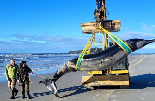 鲸鱼已经从海滩上移走了,当地的rūnaka成员,或议会成员,以及奥塔哥博物馆都在现场支持和记录。
